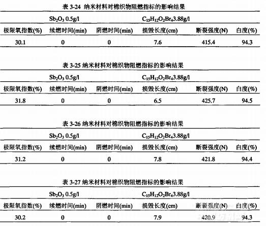 3.4.1纳米材料(Sbz03)和四溴双酚A(C15H12O2Br4)的用量纳米材料Sb203和四溴双酚A在整理浴中的添加量为:m(Sb):m(Br)=1:3,