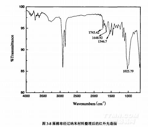 为了更好的说明纳米材料和棉纤维的交联情况,对棉织物进行了红外光谱测试,见图3.8。
