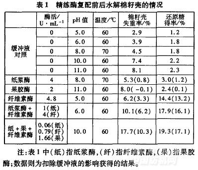 2.1精练酶复配前后水解棉籽壳