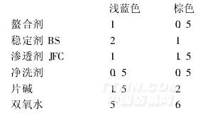 工艺流程 浸轧室温前处理工作液→高温处理(110℃×20min)→保温(80℃×8min)→中和(加入去碱剂,40℃×8min,溢流2min,pH值控制在7)→加入除氧剂(40℃×10min)→水洗(室温×8min)