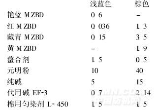 工艺流程 室温入染→促染(元明粉,60℃×30min)→固色[加纯碱/代用碱(只用一种)和匀染剂,60℃×50min]→排液→水洗(60℃×8min,溢流2min)