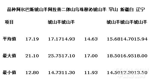 7个品种中鳞片高度的极大值出现在阿拉善绒山羊为25.75μm,极小值出现在二狼山绒山羊为11.30μm最大极差出现在同一个品种阿拉善绒山羊为11.02μm,最小极差出现在辽宁绒山羊为4.50μm;平均细度最粗的品种—辽宁绒山羊鳞片高度极差最小,平均细度最细的品种—阿拉善绒山羊细度极差最大,由此看出山羊绒细度越细,鳞片高度越大,鳞片高度的极差也越大,反之山羊绒细度越粗,鳞片高度越小,鳞片高度的极差也越小。详见鳞片高度极限值汇总表3、表4。