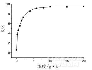 利用不同浓度的 HBP-HTC(5)溶液在自身 pH 值、100℃下对真丝织物处理 3min,经处 理的真丝织物染色 K/S 值和 HBP-HTC 浓度的关系如图 1 所示。由图可见,开始时随着 HBP-HTC 浓度的增加,真丝织物活性染料染色 K/S 值明显提高。这是由于 HBP-HTC 能有 效改善真丝织物表面的 ζ 电位,提高活性染料的上染率,并且随着 HBP-HTC 浓度的增加, 真丝织物对 HBP-HTC 的吸附量增加,所以染色 K/S 值增加。当 HBP-HTC 浓度达到 5g/L 时, 随着 HBP-HTC 浓度的增加,K/S 值增幅不明显。这是由于此时真丝织物对 HBP-HTC 的吸 附量已经达到饱和。考虑到实际应用,选择 5g/L HBP-HTC 对真丝织物进行处理即可。