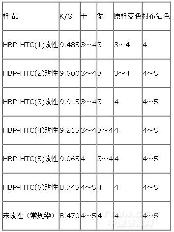Tab. 3 Influence of different molar concentration of the quaternary ammonium salt group of HBP-HTC to the fastness of reactive dyeing with no salt of treated silk fabrics
