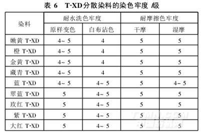 (6)T-XD系列分散染料所染涤纶织物的耐洗色牢度、耐摩擦色牢度俱佳,可进一步用以筛选高牢度系列的碱性浴染色分散染料。