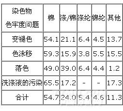 表一 主要染色物发生的变褪色和落色等色牢度问题的比例(单位:%)