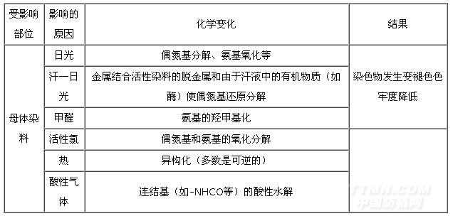 从表一可见棉染色物发生的变褪色和落色等色牢度问题最严重,特别是使用活性染料染色的棉染色物无论在洗涤时,储存时或穿着时都会发生变褪色和落色问题。分析产生这些变褪色和落色等色牢度问题的原因,选好和用好染料,提高各种染色物的质量,对增强纺织品的时常竞争力和应对欧美等过不断设置的各种技术壁垒和贸易壁垒具有积极作用。[1]