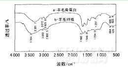图5是羊毛角蛋白和羊毛纤维的红外光谱分析图。