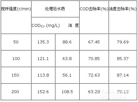 表4 搅拌强度对CODCr、浊度去除率的影响