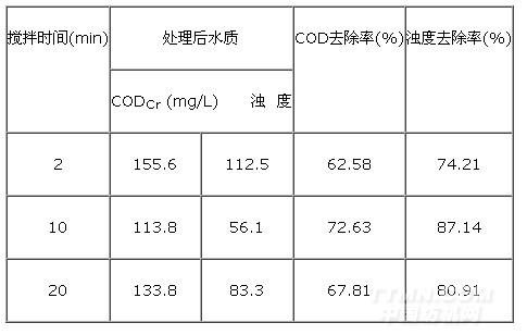 表5 搅拌时间对CODCr、浊度去除率的影响
