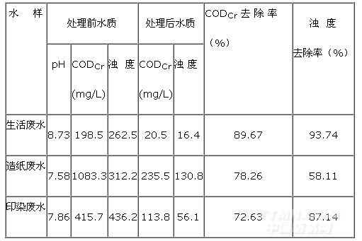 表9 PAC对生活污水、造纸废水、印染废水絮凝效果的对比