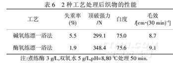 2.2碱氧练漂一浴法与酶氧练漂一浴法对比