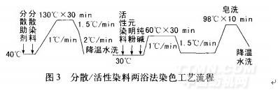 涤棉织物分散/活性染料两浴法染色工艺流程见图3。