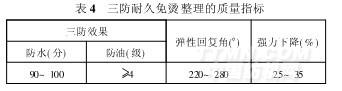 ( 1) 三防耐久免烫漂白织物应注意织物白度和黄变现象 , 在生产过程中要控制好温度和时间 , 以免白度下降 , 发生黄变。同时 , 应注重坯布质量检验 , 要求三丝达标 ; 尤其是美标 4 分制的订单 , 更要严格检验 , 必要时要提前修除三丝后再进行加工生产。