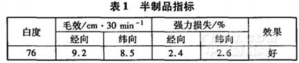 经过原纤化处理后的织物表面产生许多纤毛,可采用专用纤维素酶去除,在日本工业砂洗机中进行。纤维素酶的活性受温度、酸碱度影响较大,仅能适应较窄的pH值范围,生产过程中要严格控制,用缓冲剂调节处理浴pH值。酶处理后通过升高温度使酶失活,避免纤维素酶在织物上残留,造成强力过度下降。不同用量的纤维素酶处理效果见表2。