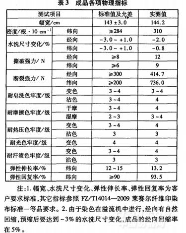 成品规格和各项物理指标测试结果见表3。