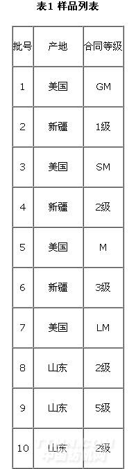为了保证比对的结果更具代表性,选取不同品质、不同级别的多批样品进行测试。品种单一、品质优良、物理性能一致性好的棉花在检测中出现误差的可能性较小,为保证检测样品品质的一致性和均匀性,在对样品选择时,尽量选取这种性质的棉花。