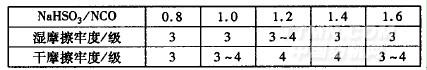 按1.3节进行染色,n(NaHSO,)/n(NCO)对染色织物耐摩擦色牢度的影响见表3。