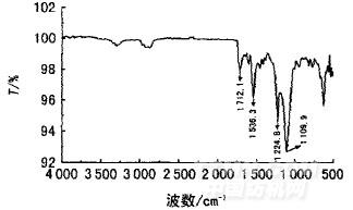 图9中,1700cm处为CO—NH中C一0的伸缩振动峰,1500cm处为CO—NH中NH的变形振动峰,这两个振动峰的出现,说明反应产物中有氨基甲酸酯的生成。醚键O—C—O的伸缩振动峰在1100cm处,在1224.8cm处和1109.9cm处分别有两个振动峰,说明该合成产物为聚醚型聚氨酯。