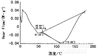 图10中,57.08℃与177.23℃之间出现了一个明显的吸热峰,这表明该合成产物在57.08℃时开始解封,但反应程度不大,当温度升至118.33℃时,解封反应吸热达到最大值,说明此时解封反应最快。之后,吸热峰逐步变小,直到177.23℃无吸收峰,说明解封温度已完全进行。故该封端型水性聚氨酯交联剂的解封温度为118.33℃。