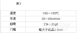 (2)定型车速的快慢,主要取决于定型区的长短与定型温度,车速太快定型没有效果,染整过程中细皱纹不易解决,车速慢尤其在高温条件下,织物泛黄,弹性下降。