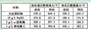 表5竹材LyoeeR纤维织物前处理和染色后的断裂强力