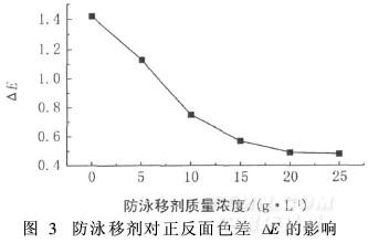 2.3 防泳移剂质量浓度对色差ΔE的影响