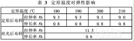 其它条件同上,定形时间20 s,定形温度对弹性的影响见表3。