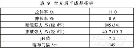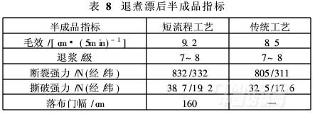 由表8可知,短流程工艺处理后,半成品指标完全能满足染色要求,退浆后织物门幅收缩10 cm。