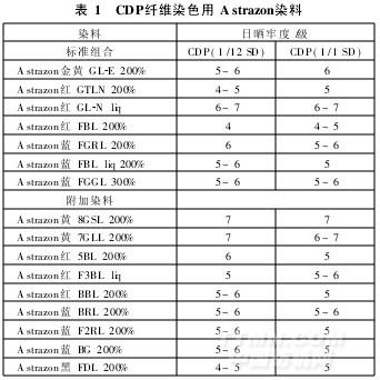 针对CDP纤维的特性,德司达公司开发了一套用于CDP纤维染色的染料,如表1所示。