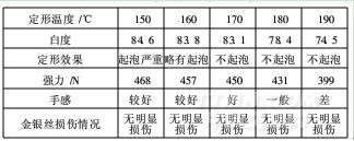 采用不同温度对金银丝/棉提花交织物进行定形(定形时间为60s),织物质量情况见表4。