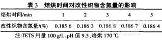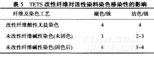 3.2合适的改性工艺为:"lETS用量100g/L,改性工作液的pH值9.5,焙烘温度170℃,焙烘时间3min.