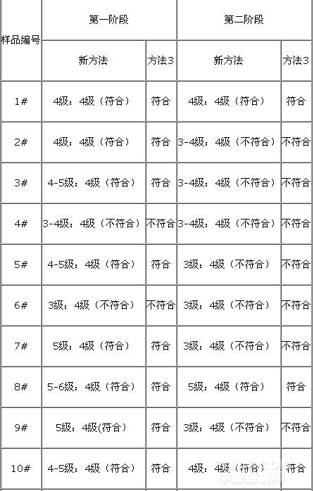 由于GB/T 8427—2008中的方法3在其所列方法中相对简便,也是目前许多实验室常采用的测试方法,故以方法3与新方法进行试验比较,对比结果见表2。