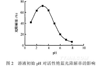 2.2 溶液初始pH值对活性艳蓝光降解的影响