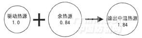 说明:视余热的品位与中温热源的需求温度不同,热平衡中的系数会有所不同。一般,中温热源的需求温度越低,平衡中的参数就越高。
