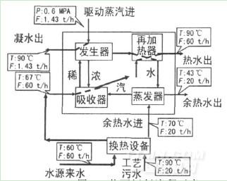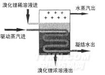 技术原理 在压力一定的条件下,不同的物质,水和溴化锂的蒸发温度不同。在发生器内,利用外界驱动热源的热量,对溴化锂稀溶液进行浓缩,产生的浓溶液进入吸收器进行吸收,同时产生的水蒸汽进入再加热器,对热媒进行再次加热。