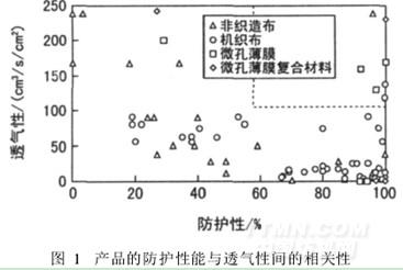 图1为薄膜和复合薄膜与非织造布、机织布防护材料间的性能对比。