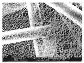 静电纺丝是生产纳米纤维的有效方法。采用纳米纤维制备孔径极其细小的超薄网状薄膜,并将其添加到传统非织造布中,尽管只是添加了极薄的一层(1. 0和2. 0 g/m2),但液体杀虫剂在该复合非织造布中的穿透能力却大大降低(见图2)。