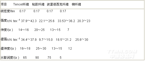表2-1 Tencel纤维与其他纤维物理性能比较