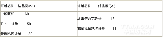 Tencel纤维与其他纤维素纤维的结晶度比较如表2-3所示