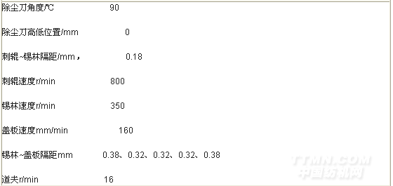 表3-1梳理工艺(TN25/CJ75 14.8tex)