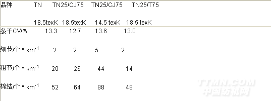 表3-4细纱质量水平(TN ,TN25/CJ75 )