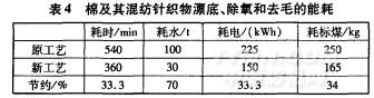 表4数据显示,应用生物酶染整加工技术对棉及其混纺针织物进行漂底、除氧和抛光,在节约用水、用电和耗汽等方面具有突出的效果。