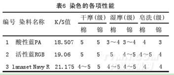上述数据可以看出,它的活性染料牢度和K/S值优于酸性染料的湿摩擦牢度,从而可以看出这种匀染剂能替代酸性染料染锦纶牢度不好的问题。