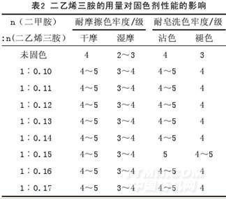 2.1.2二乙烯三胺的用量对固色剂性能的影响