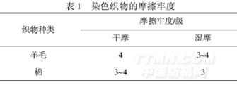 由表1可以看出,高分子阳离子活性染料对棉染色的摩擦牢度较差.可能原因是发生水解的高分子阳离子活性染料与纤维的结合力比较大,附着在纤维上.