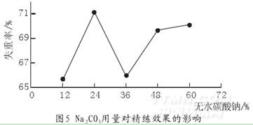 由上表可得出结论,当Na2CO3的用量为24%(omf)时,失重率最大为71.14%,可以获得最佳的处理效果。