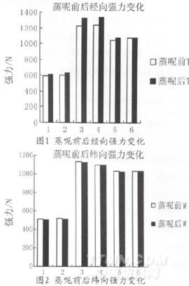 按照上述蒸呢工艺条件对织物进行蒸呢处理,蒸呢前后织物的经、纬向强力变化如下图: