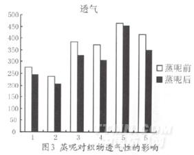 按照上述蒸呢工艺条件对织物进行蒸呢处理,蒸呢前后织物的透气性能变化如下图3:
