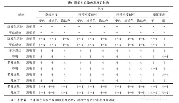 对织物的皂洗牢度和汗渍牢度影响不大,蒸呢前后牢度评级基本不变,只有湿摩擦牢度偶尔会提高半级,也许是测定过程中的误差造成的。